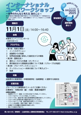 このワークショップでは、国連記念日「世界湖沼の日」の制定をきっかけに、世界とつながりながら、環境活動の発表や交流を通して湖について考えます。