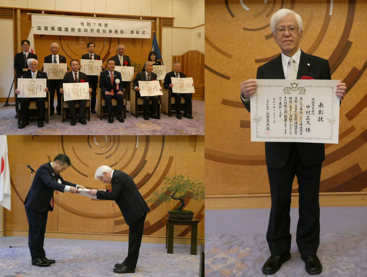 ILECの中村正久 科学アドバイザー(元ILEC副理事長)が、滋賀県内の環境保全に関し、特に顕著な功績のあった団体または個人に対して贈られる「滋賀県環境保全功労者知事表彰」を受賞しました。